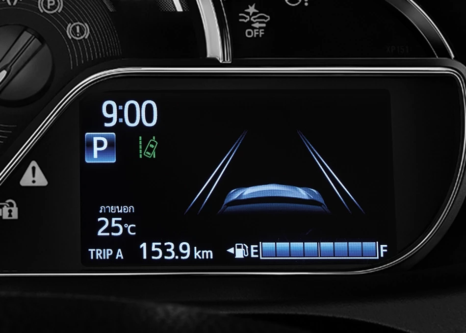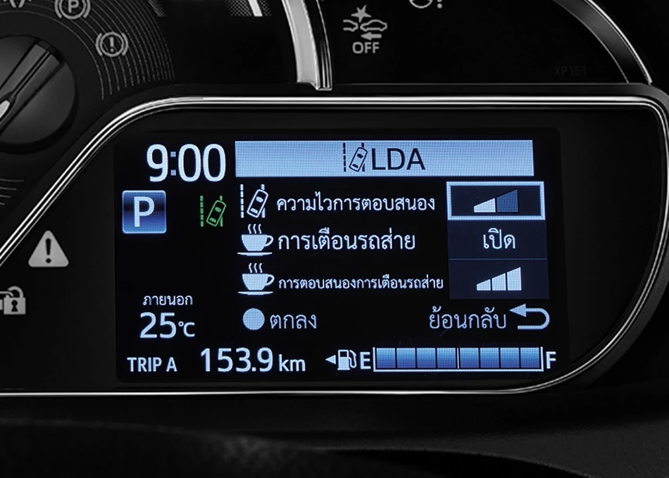 มาตรวัดแบบเรืองแสง พร้อมจอแสดงผลข้อมูลการขับขี่แบบจอสี TFT ขนาด 4.2 นิ้ว แสดงข้อมูลการขับขี่โดยรวม แสดงการทำงาน และการตั้งค่าระบบเตือนเมื้อออกนอกเลน LDA